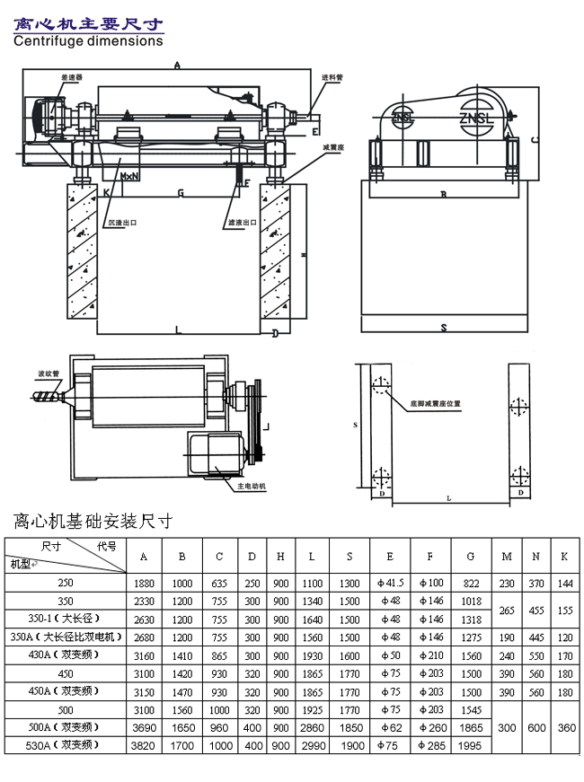 “臥式螺旋卸料沉降離心機(簡稱臥螺離心機)是利用離心沉降原理分離懸浮液的設備。對固相顆粒當量直徑=3um、重量濃度比:10%或體積濃度比=70%、液固比重差:0.05g/cm3的各種懸浮液均適合采用該類離心機進行液固分離或顆粒分級。